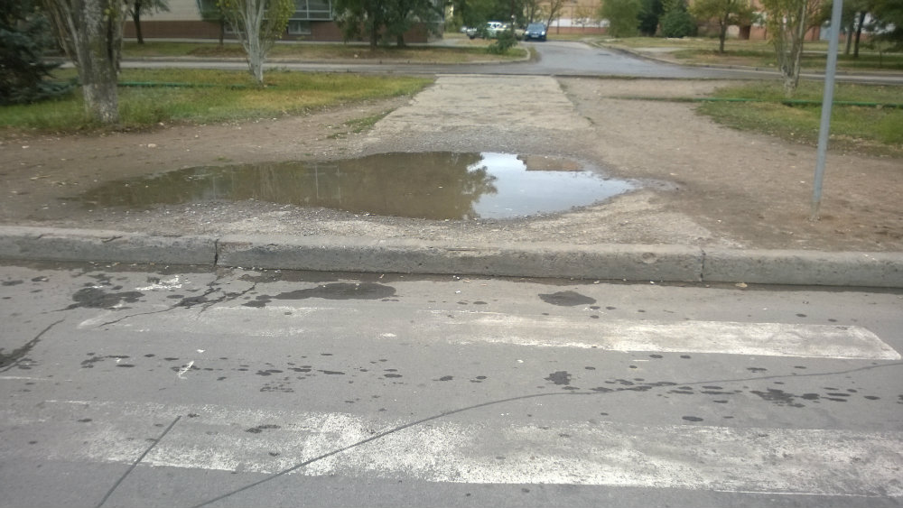 Силами МБУ "Комбинат благоустройства" выполнены работы по ликвидации лужи на указанном в обращении тротуаре.
