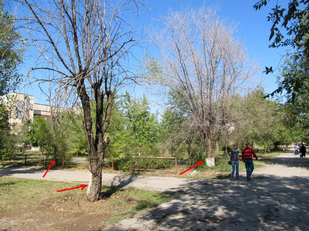 Работы по сносу сухих деревьев на указанной территории запланированы на 4 квартал 2015 г. Работы будут выполняться силами МБУ «Комбинат благоустройства»