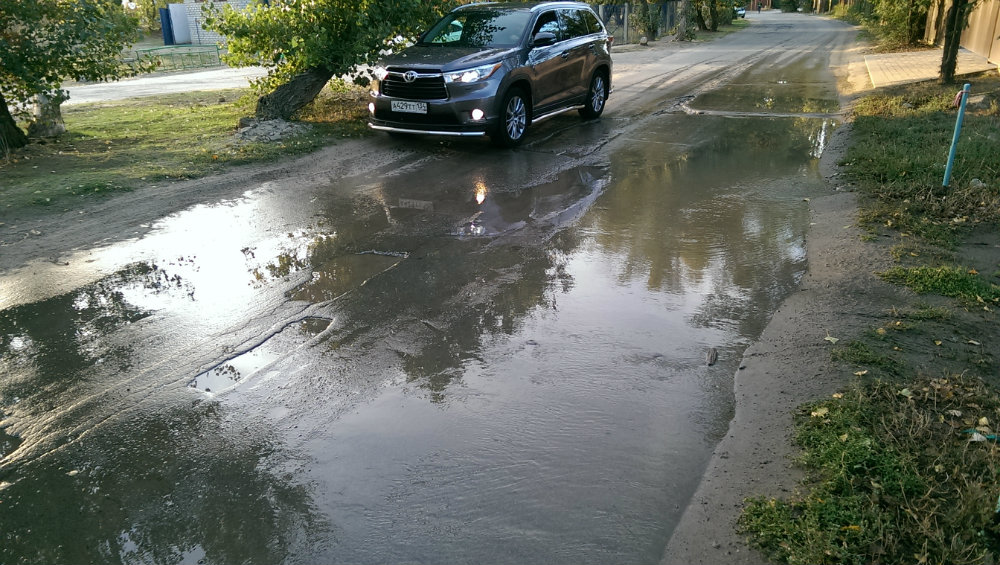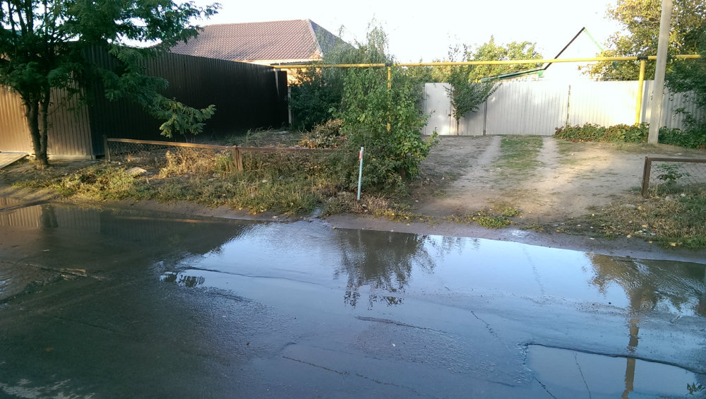 Разлив воды на дороге