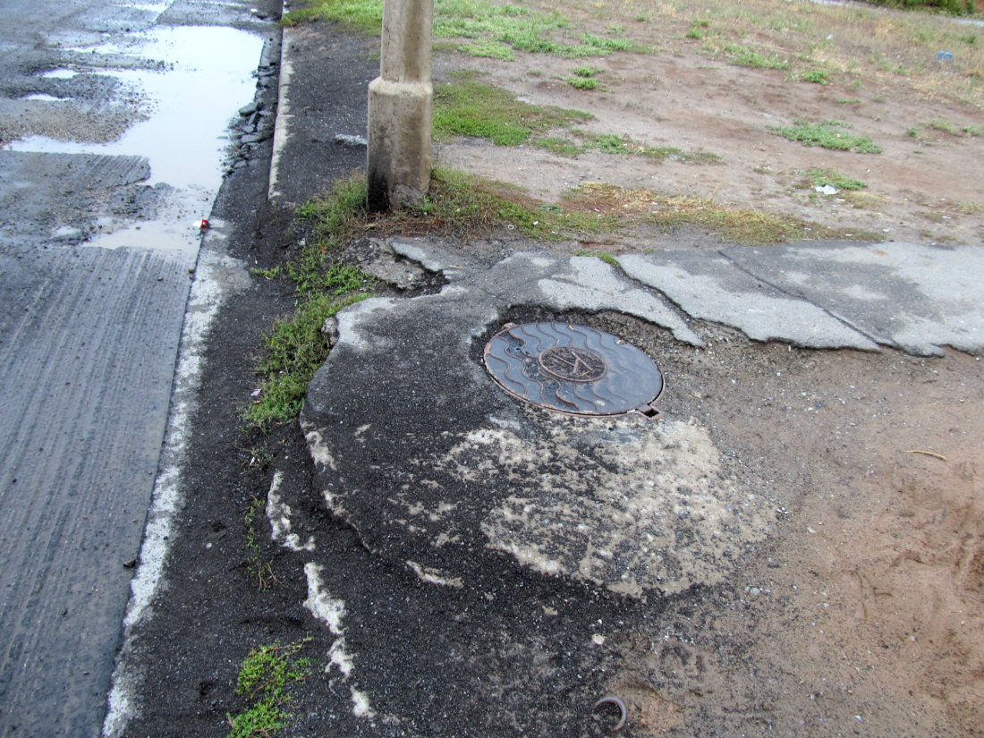 Разбитый участок тротуара в 38 м/р