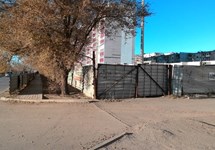 По заявлению застройщика разрешение на строительство от 27.06.2013 №RU34302000-1177 объекта капитального строительства: "4-х секционный 10-этажный жилой дом со встроенно-пристроенными помещениями", расположенному по указанному адресу, продлено до 31.12.2017 г. В связи с этим перенести ограждение строительной площадки за пешеходный тротуар до окончания строительства не представляется возможным, так как согласно проектной документации, в соответствии с которой выдано разрешение на строительство, на данной территории расположена опасная зона действия грузоподъемных механизмов.