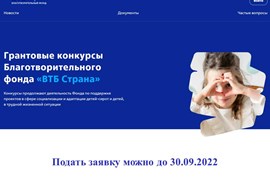 В настоящее время ведется прием заявок на участие в открытом конкурсе Благотворительного фонда «ВТБ-Страна».
