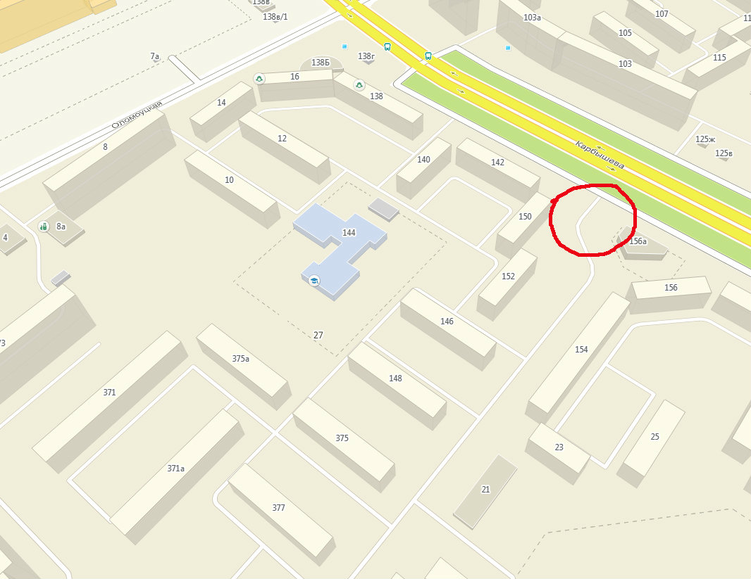 Специалистами МПК «ВМЭС» выполнена проверка существующих сетей наружного освещения на придомовой территории многоквартирных домов №№ 150, 152, 154, 156 по ул. Карбышева. По результатам проверки выявлено, что существующее наружное освещение работает в полном объеме. Освещение здания торгового центра по адресу ул. Карбышева, 156а должно осуществляться фасадным освещением. На момент проверки фасадное освещение не работало. Вопрос восстановления работы фасадного освещения относится к компетенции собственника здания по адресу ул. Карбышева, 156а.
