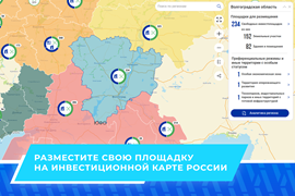 Инвестиционная карта (https://invest.gov.ru/) — единый сервис для поиска, сравнения и подбора инвестиционных площадок на территории всей страны. Здесь инвесторы и предприниматели могут представить свои земельные участки для малого бизнеса и для реализации проектов в сфере промышленности, сельского хозяйства, туризма и в иных областях.