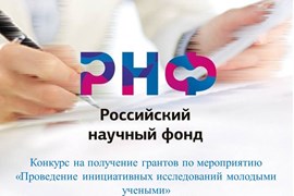 В настоящее время ведется прием заявок на участие в конкурсе на получение грантов Российского научного фонда по мероприятию «Проведение инициативных исследований молодыми учеными».