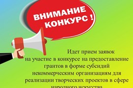 В настоящее время ведется прием заявок на участие в конкурсе на предоставление грантов в форме субсидий некоммерческим организациям для реализации творческих проектов в сфере народного искусства.