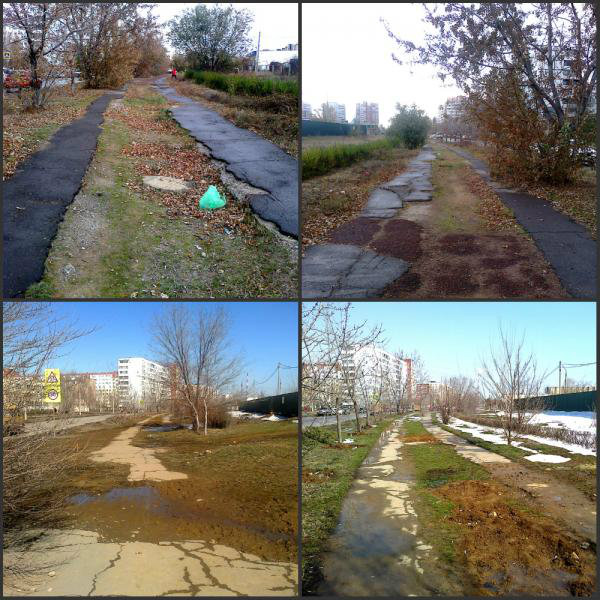 Повреждена пешеходная дорожка (26 м-р от автомойки "Дельфин" до АТС-10). #306 перенесено со старой карты проблем.