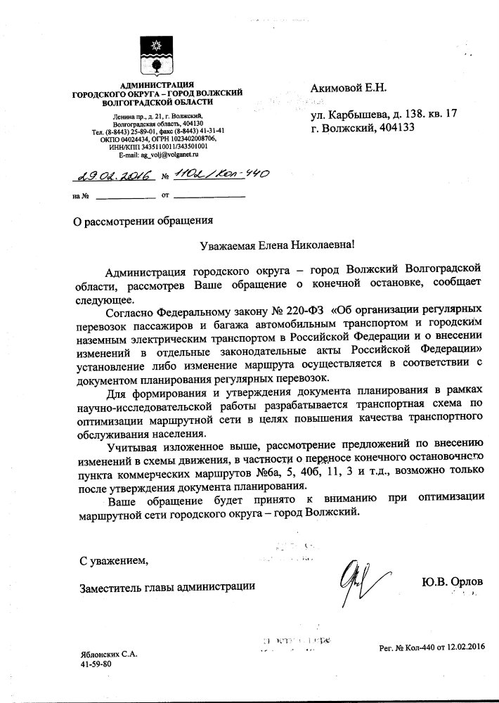 В настоящее время транспортная схема находится в разработке. Ваши пожелания по переносу конечной остановки коммерческих маршрутов администрация городского округа – город Волжский постарается учесть.