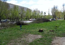 Омолаживающая обрезка зеленых насаждений была проведена до начала сока движения. По результатам обследования установлено, что деревья находятся в удовлетворительном состоянии и дают новые побеги.