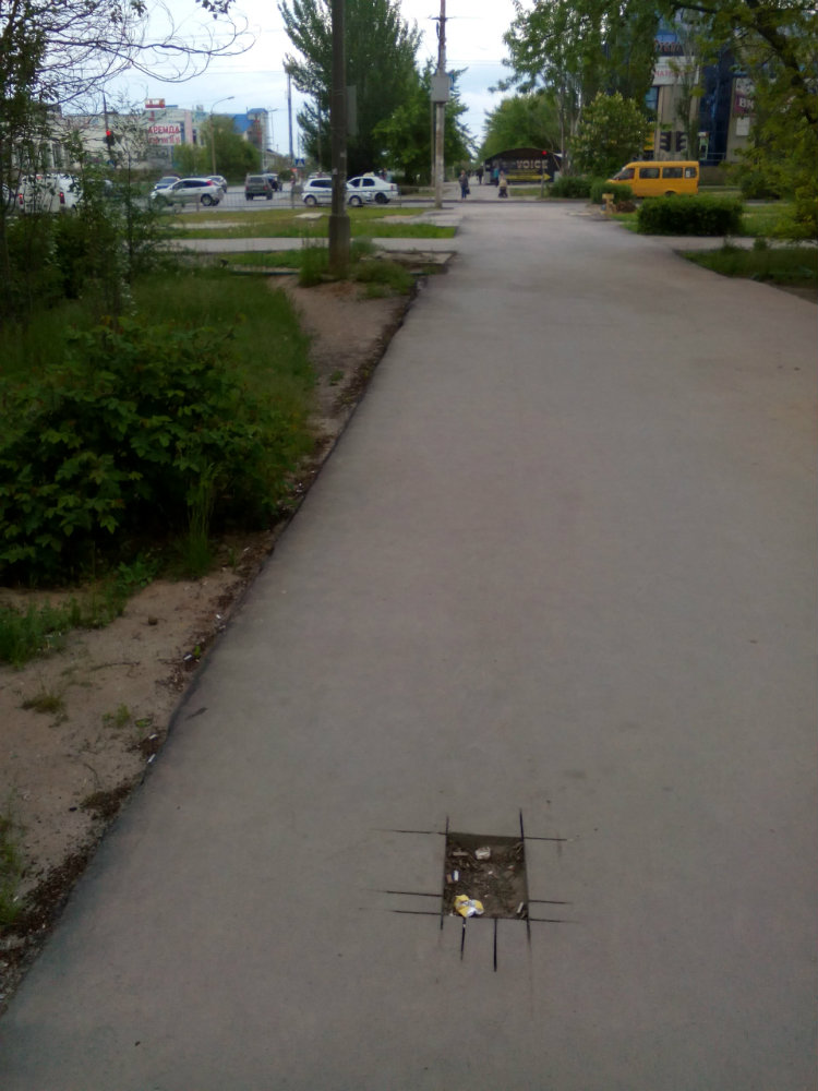 Незаделанный керн на тротуаре 25 м-р (Оломоукцая, 42)
