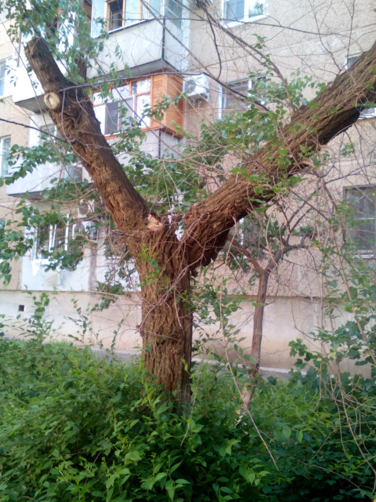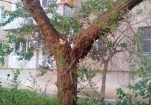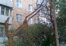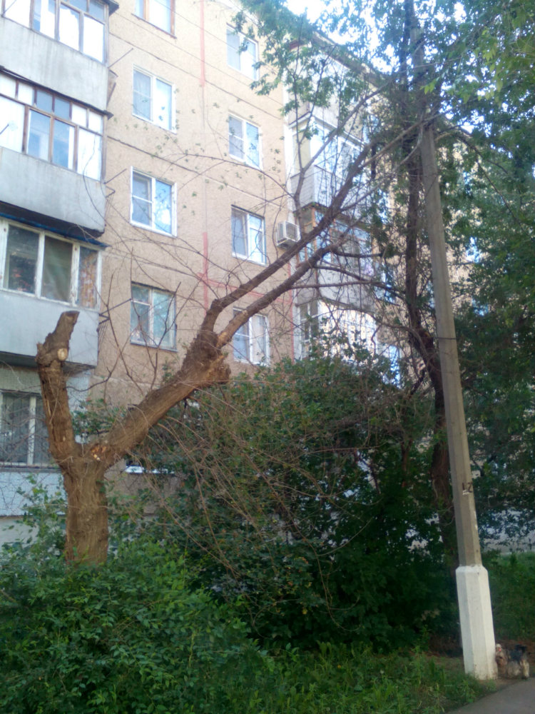 Засохшее поломанное дерево (24 м-р, ул. Оломоуцкая, 64 )