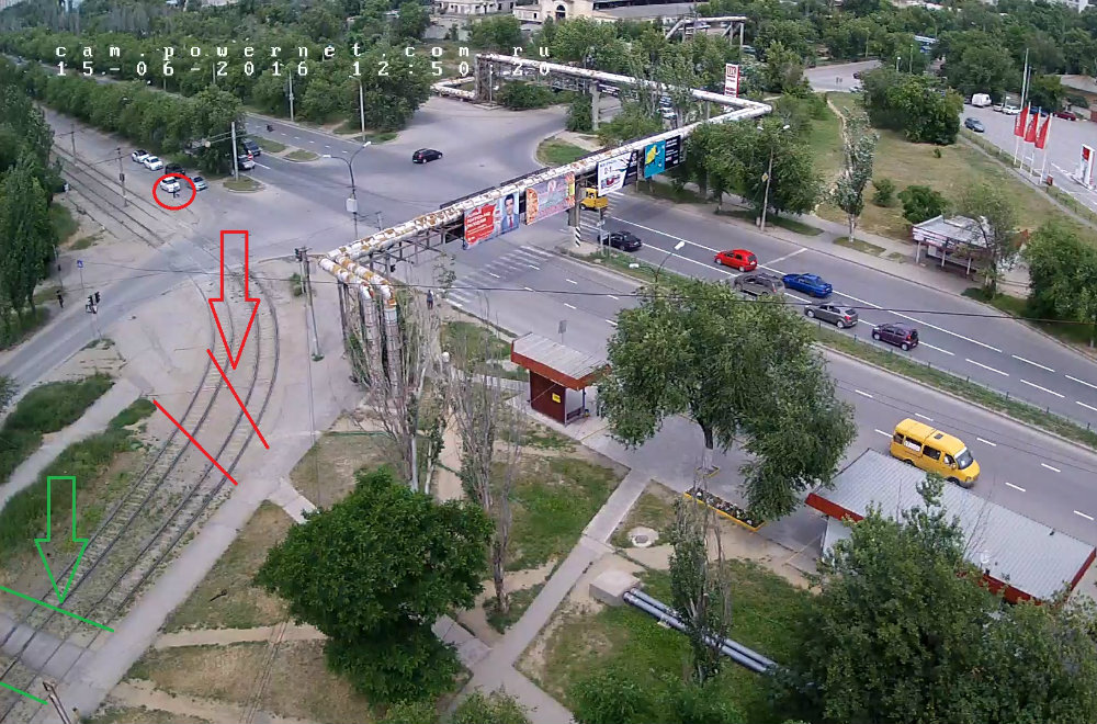 Необустроенный переход через трамвайные пути (Акрас-центр)