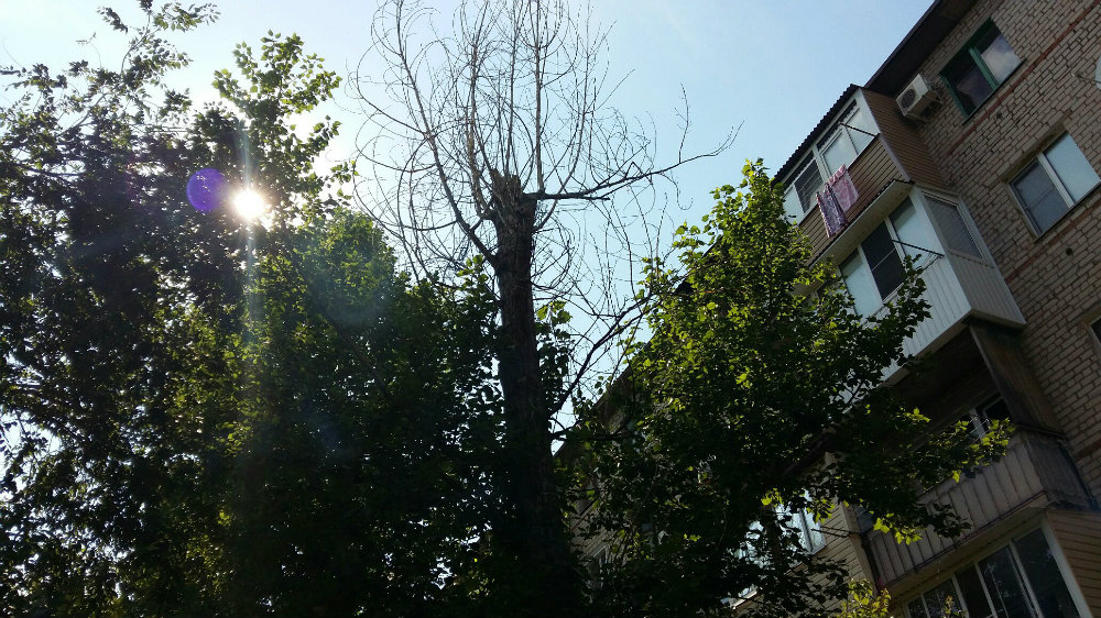 Силами ООО «Лада-Дом» снесено 1 сухое дерево и произведена глубокая обрезка двух деревьев между 5-м и 6-м подъездами МКД по ул.Заводской, 8.