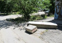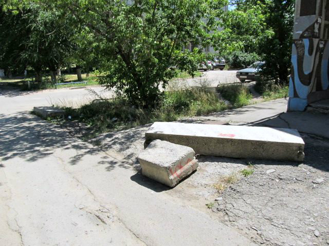 МБУ «Комбинат благоустройства» проведены работы по установке бетонных блоков, для предотвращения заезда транспорта на тротуар, остатки бетонных блоков убраны.