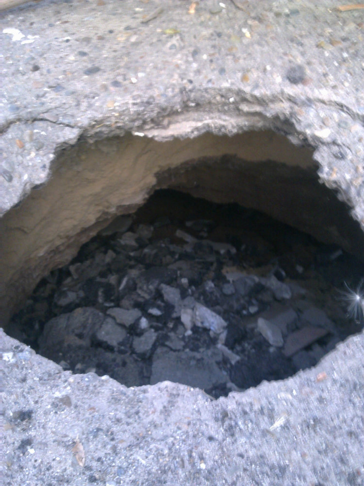 В настоящее время проводятся мероприятия по установлению организации которая устранит провал грунта.