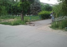 Провал асфальта в центре города