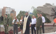 Минутой молчания все присутствующие почтили память всех, кто, исполнив свой воинский долг, не вернулся с полей сражений, кто отдал свою жизнь ради счастья других людей. Литию по погибшим отслужил настоятель храма Серафима Саровского протоиерей Петр Симора.