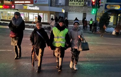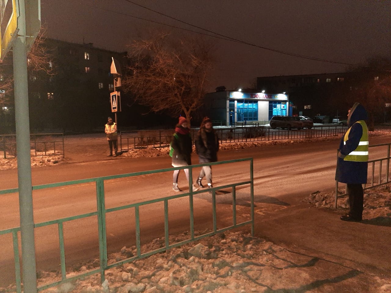 Родители школьников и дорожные полицейские утром в условиях недостаточной видимости обеспечивали безопасный переход учащихся к школе. Взрослые объясняли детям правила пересечения проезжей части и помогали им переходить дорогу по нерегулируемым пешеходным переходам вблизи школ.