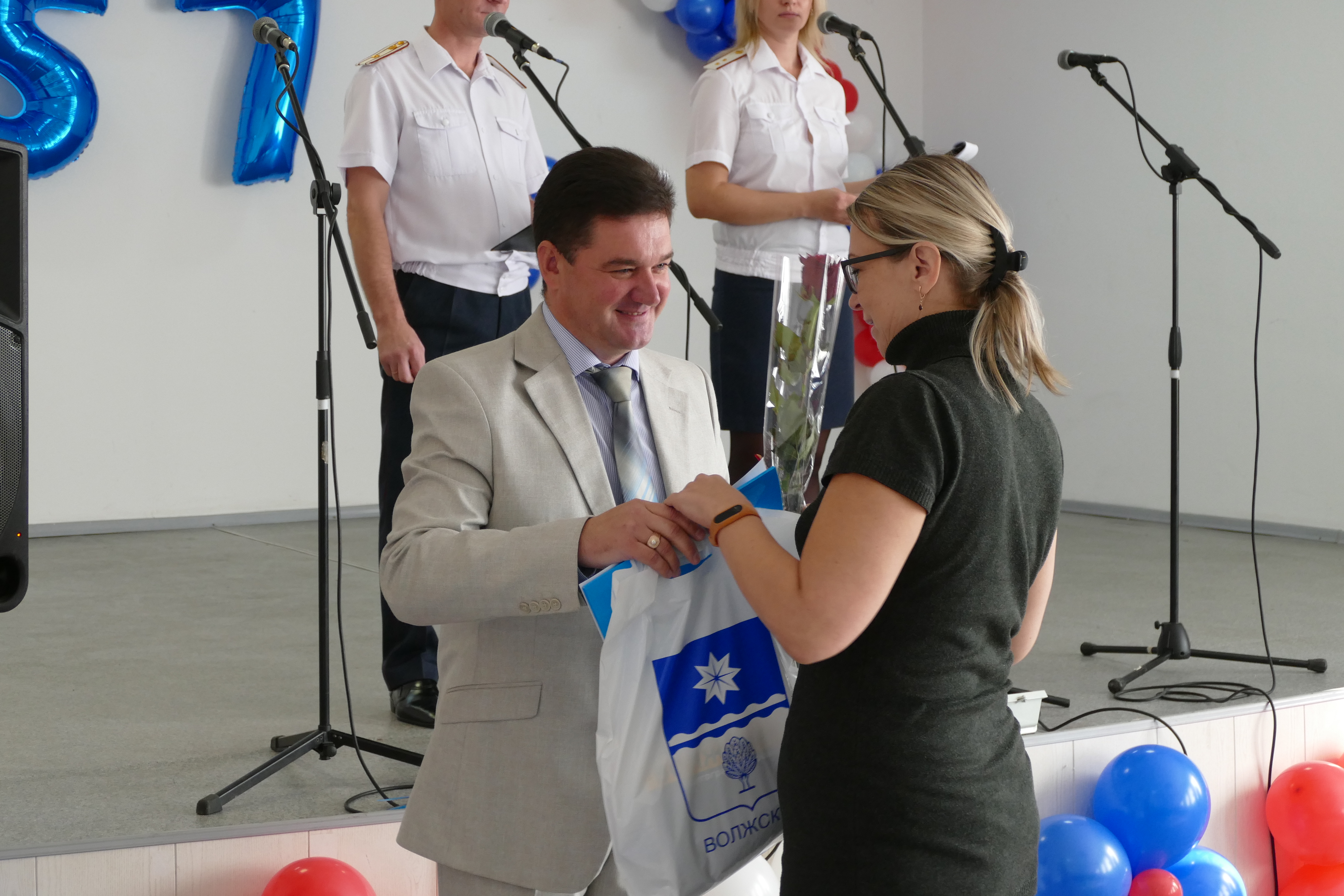 Заместитель председателя Волжской городской Думы вручила Приветственный адрес врио начальника учреждения, полковнику внутренней службы Вадиму Дудину, а также Благодарственные письма ряду отличившихся сотрудников и ветеранам ИК-12.