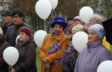 После минуты молчания в небо поднялись более 100 белых шаров, напоминая о безвинных жертвах. Затем к монументу волжане возложили цветы.