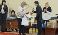 Юных спортсменов поздравили с праздником заместитель главы администрации Волжского Елена Логойдо,  председатель областного комитета по физической культуре и спорту Александр Глинянов и председатель Волжского городской Думы Дмитрий Ястребов.