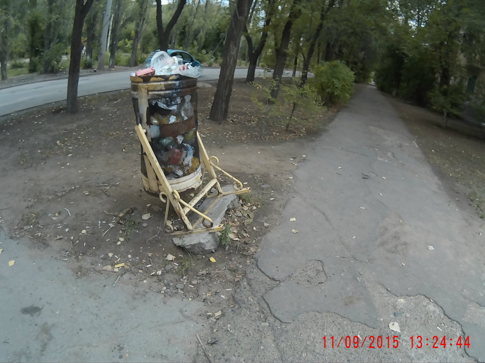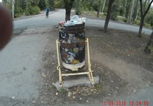 Урна одновременно сожжена, переполнена и вырвана из земли наполовину вандалами