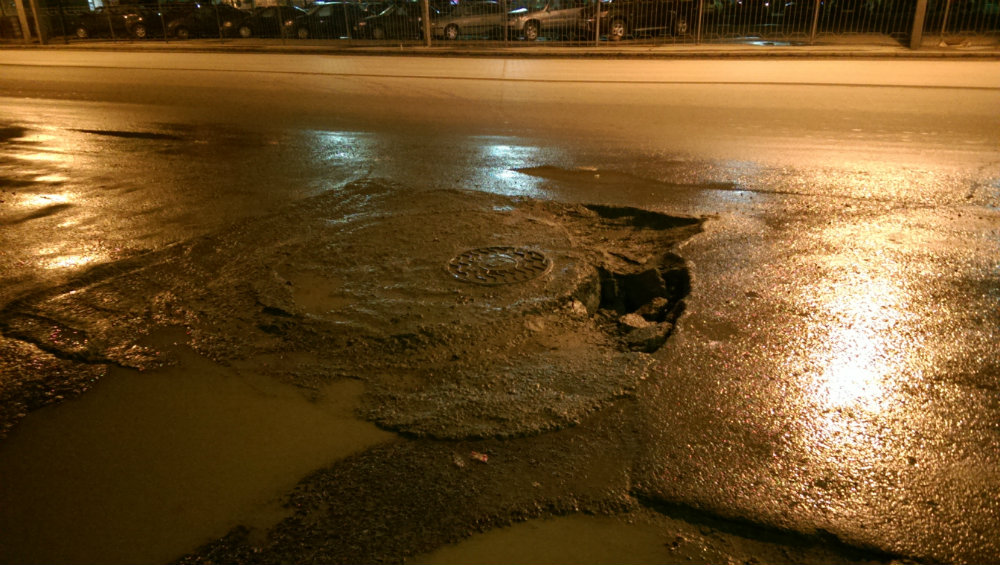Силами МБУ «Комбинат благоустройства» и КБиДХ 30.12.2015 будет проведено обследование провала на ул. Мира,142. О выполнении работ будет сообщено дополнительно в первом квартале 2016 года.