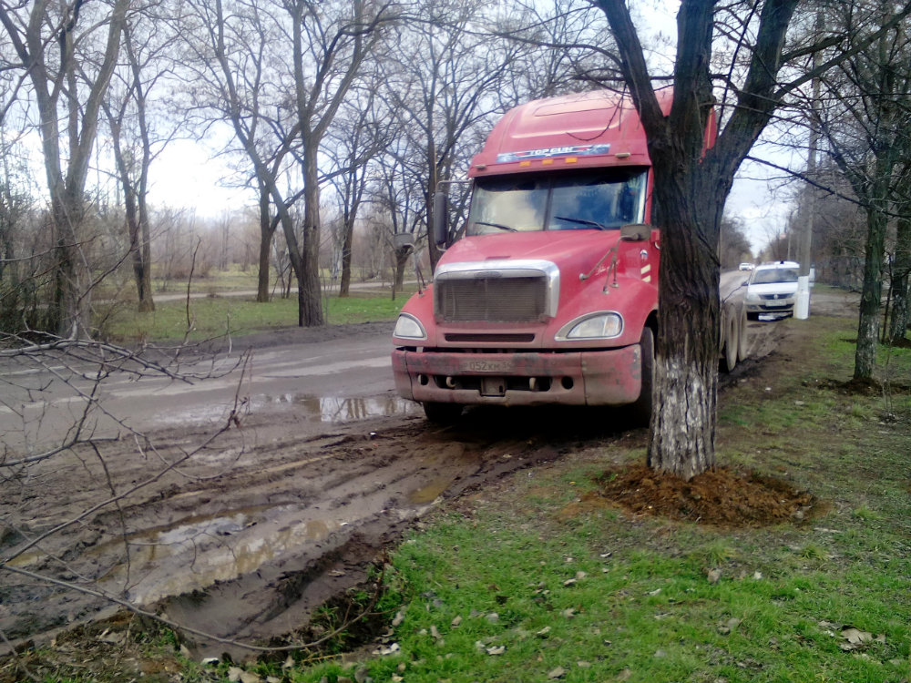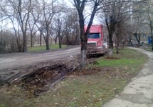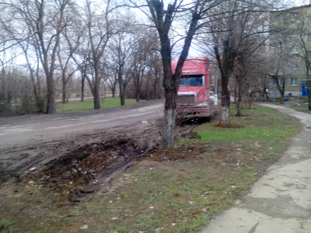 Парковка на зелёной зоне тягача