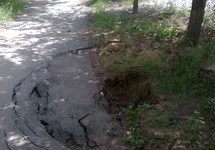 На ранее данный Вам ответ, сообщаю следующее, провал грунта устранен частично. Асфальтобетонное покрытие будет восстановлено до 08.07.2016 года.
