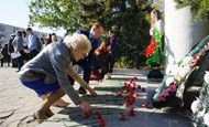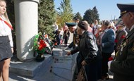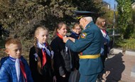 На площади около памятника собрались ученики школы № 18, которая носит имя Д.М. Карбышева, а также воспитанники близлежащих детских садов, представители первичной организации № 7 городского Совета ветеранов, общественной организации «Малолетние узники концлагерей».