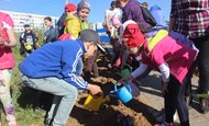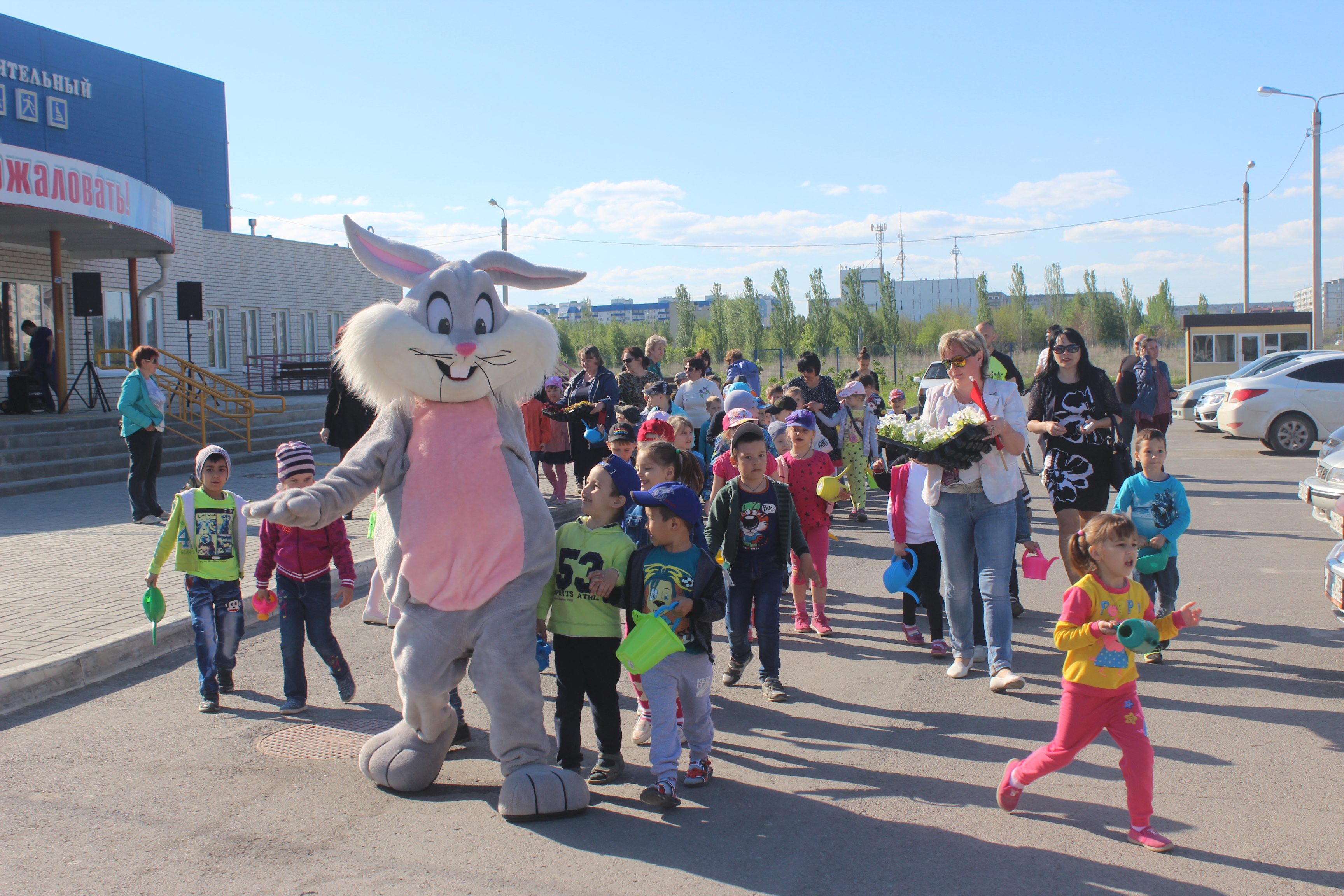 Организаторы подготовили для юных садоводов и всех участников акции небольшую развлекательную программу. С мальчишками и девчонками провела игру и спортивную зарядку ростовая кукла.