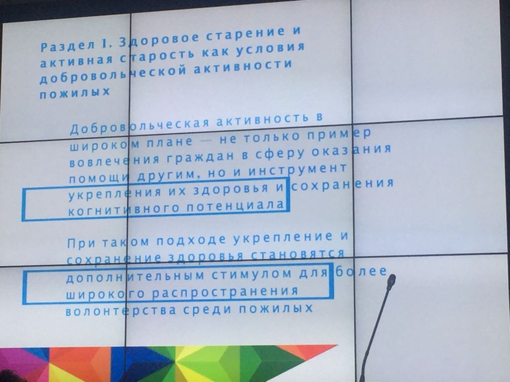 Куратор волжской «Школы социальной активности» Вера Лазарева поделилась опытом работы волонтёрского движения на форуме-семинаре «Развитие «серебряного» волонтёрства в рамках Года добровольца», который проходил в Общественной палате Российской Федерации в Москве.